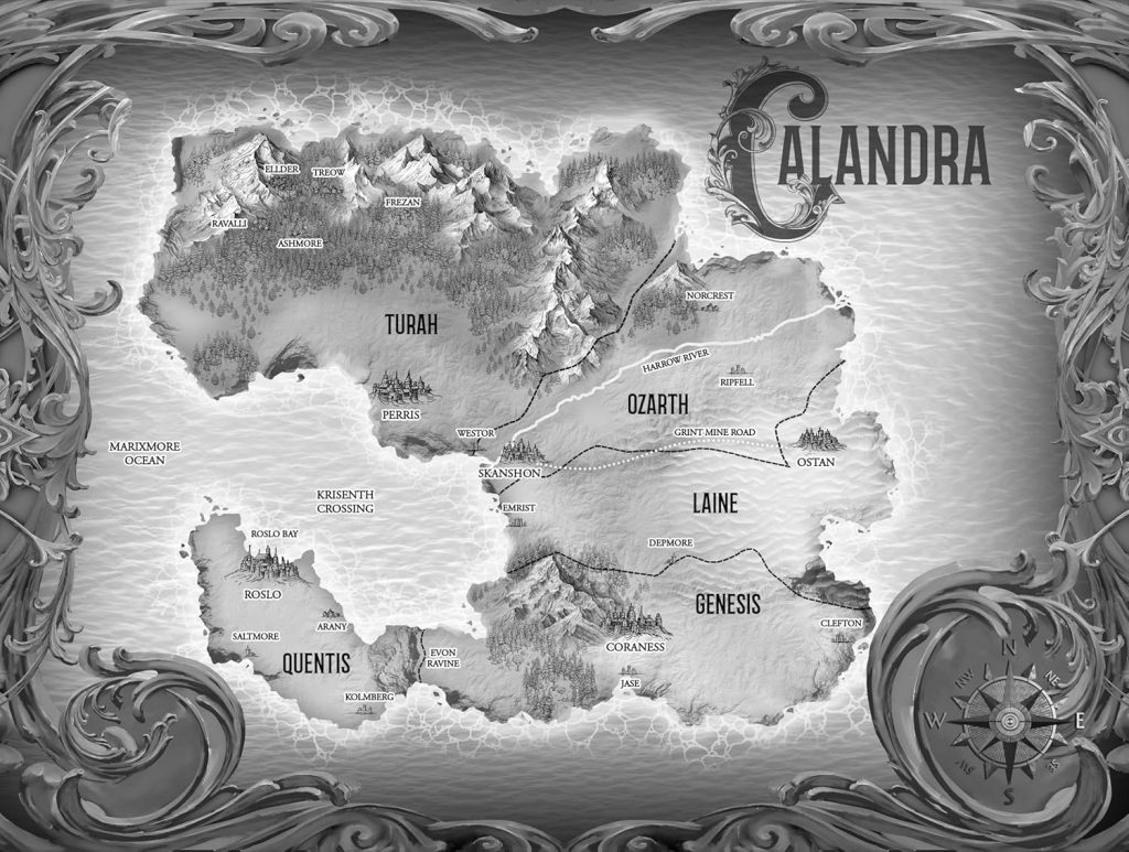 | Roslo (in Quentis) | Capital of Quentis, known for white buildings that glow in the sunlight and a gold-plated castle. In the throne room, the Guardian claims Odessa as a bride prize, leading to a rushed, blood-bound wedding ceremony in the castle sanctuary. |